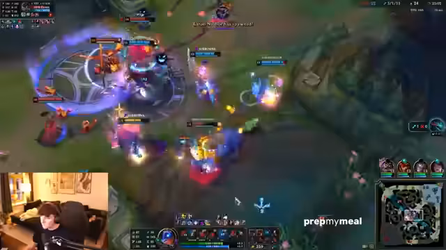 05:30:02Im späten Spiel konzentriert sich das Team auf die Kontrolle des Barons, um einen entscheidenden Vorteil zu erlangen. Nach einem erfolgreichen Teamfight, bei dem mehrere gegnerische Champions ausgeschaltet werden, wird der Baron angegriffen. Die Spieler koordinieren sich, um den Baron schnell zu besiegen und gleichzeitig den Gegner vom Stehlen abzuhalten. Nach dem Baron-Buff wird der Druck auf die gegnerischen Türme erhöht, wobei die Bot-Lane und Mid-Lane als Hauptziele dienen. Die Spieler nutzen ihre Fähigkeiten und Items, um die Türme schnell zu zerstören und die Basis des Gegners zu erreichen. Trotz einiger knapper Situationen und aggressiver Plays des Gegners behält das Team die Oberhand und kann das Spiel erfolgreich beenden. Der Sieg wird ausgelassen gefeiert, und die Spieler loben die gute Teamarbeit und die effektiven Calls während des Spiels.