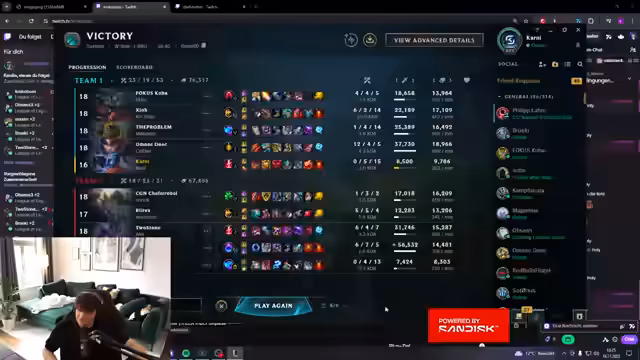 03:04:20Der LiveStream zeigt intensive Teamkämpfe, in denen das Team um Kani versucht, die Oberhand zu gewinnen. Ein entscheidender Ari-Catch führt zu einem potenziellen Game-Ende, doch trotz hohem Schaden vom Gegner und einem fehlenden Nashor wird der Kampf fortgesetzt. Die Diskussion über den unerwartet hohen Brand-Schaden und einen guten Catch zeigt die Dynamik des Spiels. Es wird angemerkt, dass Kani zum ersten Mal nicht der Jäger, sondern der Gejagte ist, was die Situation zusätzlich erschwert. Ein gut ausgeführter Bait wird gelobt, auch wenn der Pick als nutzlos für Objectives eingestuft wird. Die Xio-Show beginnt, und trotz eines gut getimten Sterak's Gage kann Xio das gesamte gegnerische Team facetanken, was auf eine bevorstehende Niederlage für Grimms Märchen hindeutet. Der Sieg in diesem Spiel wird als Ergebnis dieser Aktionen betrachtet.