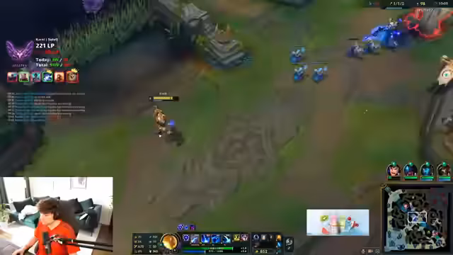00:02:54Während des Spiels analysiert der Streamer den Matchmaking-Prozess und seine Position als Mid-Lane. Er beschäftigt sich mit dem gegnerischen Pick Galio und dessen potenzielle Roaming-Tendenz. Es werden strategische Überlegungen angestellt, wie man mit dem Xerath gegen den Druck von Galio umgehen kann, und es wird die Notwendigkeit betont, auf die Aggression des Gegners zu achten. Der Fokus liegt auf dem Management der Lane und der Vermeidung von unnötigem Risiko.