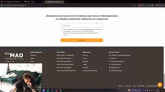 05:38:16Emma ist wieder als Partner zurück und bietet einen Geburtstags-Sale mit 50% Rabatt auf ausgewählte Produkte. Mit dem Code 'Kani' erhalten Zuschauer zusätzliche 5% Rabatt. Der Streamer betont, dass er seit über einem Jahr Emma-Partner ist und häufig nach dem Wiedereinstieg der Marke gefragt wird. Dieser Sale wird als idealer Zeitpunkt für Investitionen in Schlafkomfort beworben.