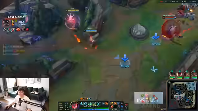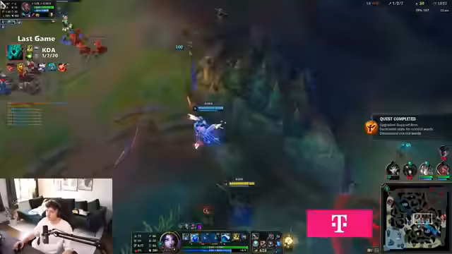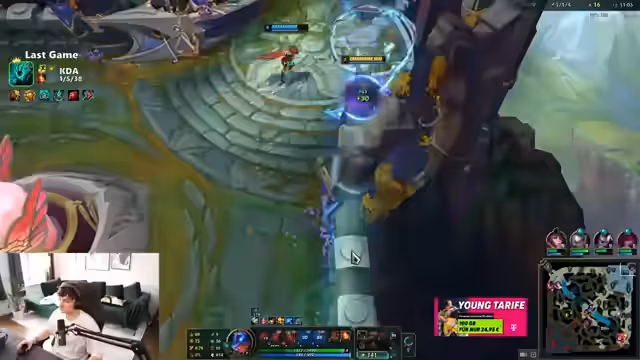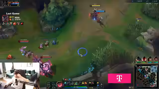 00:05:05In seinem ersten Match konzentriert sich der Streamer auf die aktuelle Meta. Er identifiziert Youngler als starken Champion und erwägt Lulu als Pocket-Pick, entscheidet sich aber dagegen. Er kritisiert die Spielweise von Gegnern wie Obsis und Jette, was auf einen tieferen Einblick in das Spiel hindeutet. Ein technisches Problem mit der Zoom-Funktion und einem unklaren, vision-gebenden Gegenstand, der wie ein Feenkreis aussieht, unterbricht kurz die Konzentration.