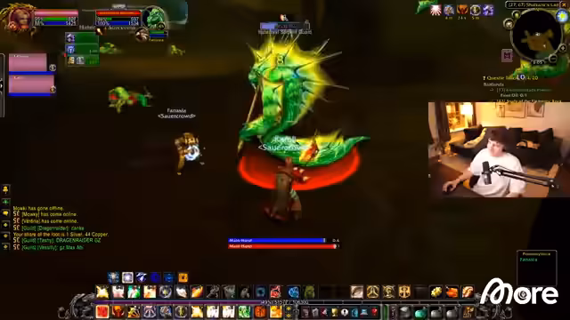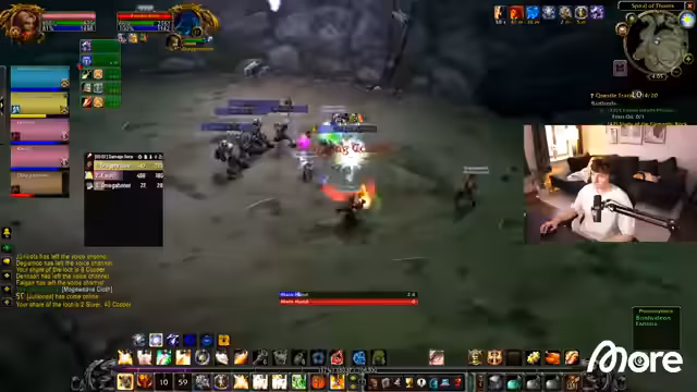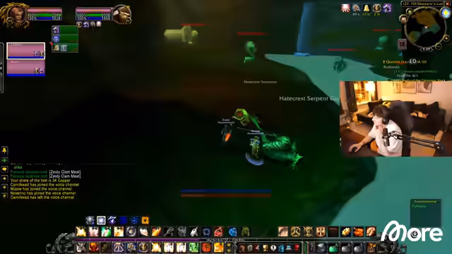 07:56:00Auf dem Weg zur Naga-Höhle bereitet der Streamer mental auf seine Heiler-Rolle vor. Er erklärt seine Heal-Philosophie für niedrige Level, die hauptsächlich auf Flash of Light basiert, während Holy Shock für Notfälle und Holy Light für kritische Situationen reserviert ist. Die Gruppe sichert sich Ressourcen wie Wasser und Granaten und erörtert die Taktik für die Naga-Höhle, die aufgrund der hohen Mob-Dichte gefährlich sein kann.