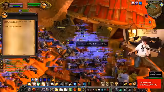 05:35:26Die Streamer planen einen Dungeon-Einsatz und treffen sich im Vorfeld in Ratchet, um Quests abzuholen und sich zu organisieren. Es werden bereits existierende Quest-Ketten erwähnt und die Suche nach den restlichen Quests beginnt. Der Streamer kündigt an, einen sogenannten 'World Buff' zu aktivieren, der ihm einen erheblichen Schadenbonus verleiht. Dies unterstreicht die Vorbereitung auf bevorstehende, anspruchsvolle Kämpfe.