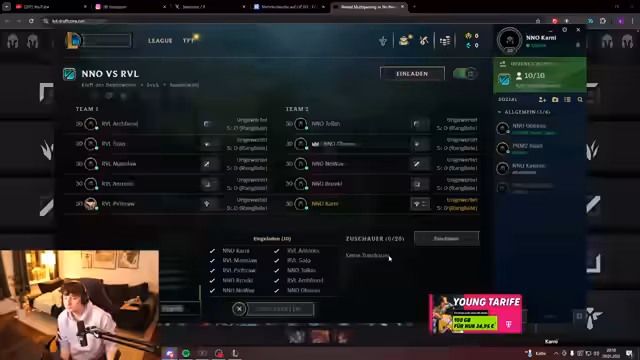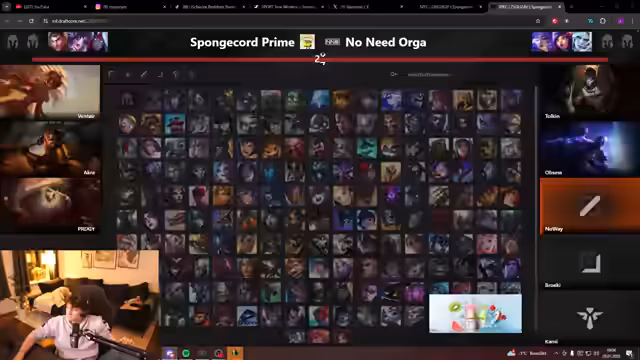 10:22:24Die Streamer analysieren den aktuellen Patch und bereiten einen Draft für ein League-of-Legends-Spiel vor. Überlegt werden Picks wie Aatrox, Akali und Malphite, während der gegnerische Varus und Jace beachtet werden. Die Synergien werden geprüft, zum Beispiel zwischen Minitaur und Miss Fortune. Entscheidungen fallen schwer, da der gegnerische Star-Spieler als sehr stark eingeschätzt wird. Man einigt sich auf einen riskanten Draft mit Bomben-Champions wie Malphite, Minitaur und Miss Fortune, auf den der Streamer sehr hoffnungsvoll ist.