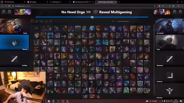 07:21:59Die Aufmerksamkeit kehrt zu World of Warcraft zurück, da ein Draft für einen Scholo-Dungeon startet. Es werden verschiedene Champions und deren Synergien besprochen, während das Team versucht, eine optimale Zusammensetzung zu finden. Die Kommunikation mit der Gegner-Composition ist oft unklar, was zu spontanen Entscheidungen wie dem Ban von Akali führt. Der Vorgang zeigt das intensive strategische Denken bei der Teamfindung.