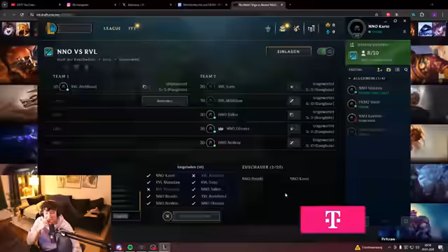 08:18:53Der Streamer beginnt mit der Planung für das nächste Match. Es findet eine intensivere Diskussion über Champion-Auswahl, Banns und Synergien im Team statt. Unterschiedliche Draft-Optionen werden durchgespielt, von klassischen Picks wie Wukong bis hin zu Flex-Picks wie Ryze. Entscheidungen über die Lane-Distribution, die Rolle des Supports und die allgemeine Spielphilosophie des Teams werden getroffen, um eine solide Basis für das kommende Spiel zu schaffen und bekannte Schwächen zu adressieren.