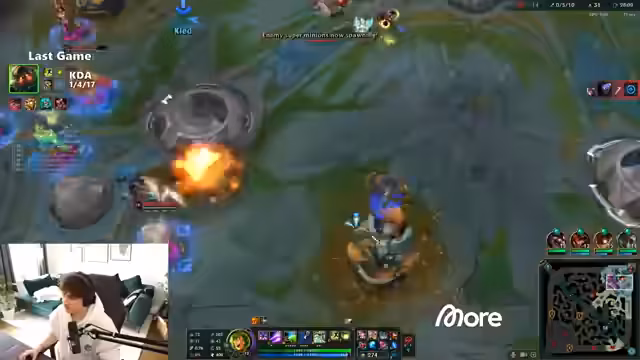 05:24:20Gegen Ende des Streams wird der Fokus auf das Endspiel der aktuellen Runde gelegt. Der Streamer erkennt an, dass seine Position in der Viewer-Lobby einen legitimen Vorteil verschaffen kann, verglichen mit Solo-Q. Mit dem Ziel, Warwick als Hauptträger zu positionieren, versucht er, die Items für seinen Carry perfekt zu verteilen. Dabei werden auch Fehler im Item-Besitz und in der Champion-Auswahl deutlich, die letztendlich zum Verlust führen, was zu einer kritischen Selbstreflexion führt.