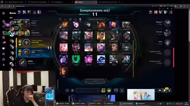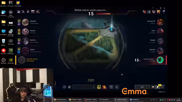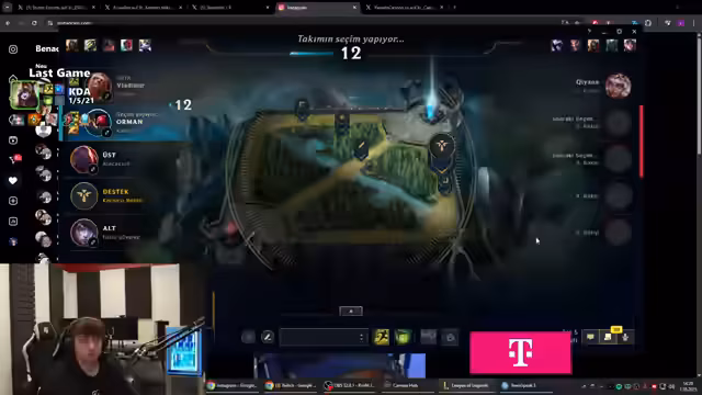 04:34:45Der Fokus verlagert sich zurück auf das Live-Gameplay für das Prime-League-Match. Es folgt eine Diskussion über den Champion-Bann und -Pick, wobei verschiedene Optionen wie Jhin, Sivir oder Ashe für die Bannphase erwogen werden. Der Speaker analysiert die gegnerischen Stats auf OPGG und versucht, einen geeigneten Draft für sein Team zu erstellen. Es wird über Teamfassungs-Engagements (z.B. Oriana, Irelia) und Sideline-Yordles (z.B. Yorick) gesprochen. Gleichzeitig wird technischen Problemen wie dem Ping (ca. 60ms) und verzögerten Aktionen Aufmerksamkeit geschenkt, die das Gameplay auf dem türkischen Server beeinflussen. Ein kurz aufkeimendes Gespräch über ein möglicherweise stattfindendes Erdbeben in Istanbul wird beiläufig erwähnt.