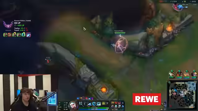 04:42:30Nachdem die Champions ausgewählt wurden, beginnt das Spiel. Die Kommunikation ist während des Spiels weiterhin sporadisch und teilweise chaotisch. Der Speaker (als Jungler unterwegs) gibt klassische Jungle-Play-by-Plays: Er klärt Jungler-Camps, plant Ganks und reagiert auf gegnerische Bewegungen. Bei einem gefährlichen Top-Lane-Gank versucht er, durch Mid-Lane zu roamend, um einen Vorteil zu erzielen. Es folgen mehrere strategische Diskussionen über die Spieldynamik: ob man einen Botlane-Dive wagen soll, wie man mit dem abgelaufenen Flash des gegnerischen ADC umgeht und wie man die Drachen-Kontrolle handhabt. Einzelne tighte Fights und Clutches, z.B. mit einem überlebten Heal, werden laut kommentiert.