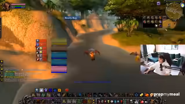 03:24:49Der Streamer berichtet von einer besonders kniffligen Quest in Booty Bay, die das Zusammenspiel mit Kevin erfordert. Ein Riese muss auf einer sehr schmalländigen Insel kitiert werden, was präzises Manövering erfordert. Nach einem technischen Problem gelingt es ihm, durch einen riskanten Sprung dem Riesen ins Gesicht, den Kampf erfolgreich zu gestalten. Diese Begegnung verdeutlicht die notwenige Präzision und das Vertrauen, das beim gemeinsamen Questen notwendig ist.