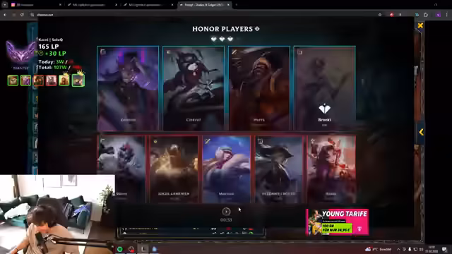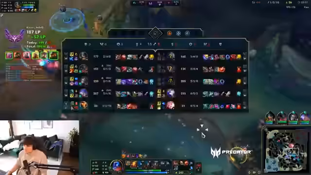 00:42:31Nach einem weiteren verlorenen Game bricht der Streamer zusammen. Er ist extrem frustriert über das eigene spielerische Niveau, das er als 'unglaublich schlecht' und 'disgusting Bastard' beschreibt. Er bezweifelt, dass er das Recht habe, in der Master-Elo zu spielen, und fordert einen 'Hard Reset', um die Elo-Inflation zu stoppen. Er fühlt sich überfordert und wünscht sich ein neues Account.