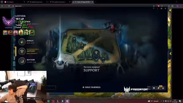 00:08:04Der Streamer analysiert ein aktuelles League-of-Legends-Spiel, insbesondere die Bot-Lane mit Ash und Lulu. Er erörtert die Schwierigkeiten gegen diese Kombination und die Notwendigkeit, in den Minions zu stehen und sich nicht von der Ashe-W nützen zu lassen. Es folgt eine Diskussion über einen Double-Win in den Solo-Lanes und die strategische Bedeutung des Jungle-Spiels, besonders wie sich ein Double-Kill auf die Stimmung des Junglers auswirken kann.