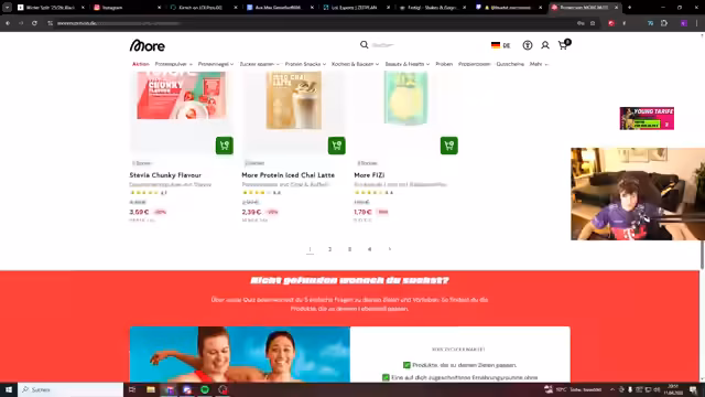 08:30:25Zum Abschluss des Streams bedankt sich der Streamer bei der Community für die Unterstützung. Anschließend geht er auf eine Partnerschaft mit dem Unternehmen "more" ein und wirbt für deren Produkte wie Proteinriegel, -kaffee und zuckerfreie Limonaden. Er nennt den Rabattcode "Karni" für die Zuschauer und gibt an, persönlich sehr zufrieden mit der Qualität der Ware zu sein, die er für seinen sportlichen Lebensstil nutzt.