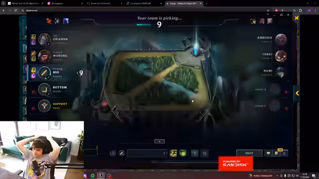 06:43:41Emco hat First Pick im Draft. Der Streamer vermutet, dass die Gegner einen Yasuo picken könnten. Es werden verschiedene Champion-Optionen für SK durchgesprochen, darunter Cassiopeia, Anivia, Rumble, Ashe und Seraphine. Der Streamer äußert die Erwartungshaltung, dass man nicht verlieren darf, und will den Draft anpassen. Ein Karma-Ezreal-Combo für Joppa und Micky wird als gutes Matchup angesehen.