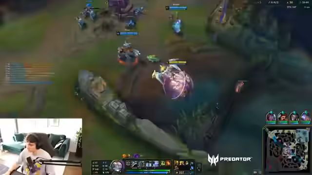 05:43:36Während des laufenden Spiels konzentriert sich der Streamer auf die taktischen Entscheidungen im Jungle und auf den Lanes. Er kommuniziert ständig mit seinem Team, gibt Anweisungen für Vision, Engages und das Verhalten in bestimmten Lanes, besonders als er erkennt, dass sein Gegner auf der Top-Lane stark ist. Entscheidungen, wann man Drake oder Baron Nashor spielen soll und wie man Vision kontrolliert, sind zentral. Das Gameplay wird von Teamkämpfen und dem Versuch, durch gute Positionierungen und Itemvorteile ins Spiel zu kommen, geprägt.