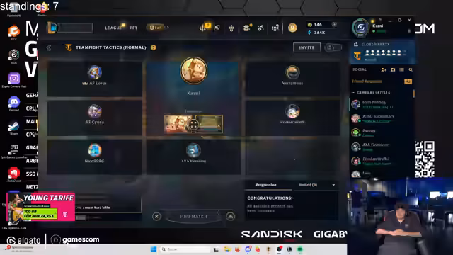 00:00:25Der Stream beginnt mit dem Warm-up für Tag 2 der deutschen TFT-Meisterschaft, die um 12 Uhr startet. Der Streamer befindet sich im Gamescom-Laden und berichtet von der Atmosphäre und den Teilnehmern, wobei er feststellt, dass es sich um ein sehr hochkarätiges Teilnehmerfeld mit vielen bekannten deutschen TFT-Pro-Spielern handelt. Er erwähnt seine eigene Platzierung von 24. vom Vortag und plant, auch heute sein Bestes zu geben, wobei er sich realistisch einschätzt.