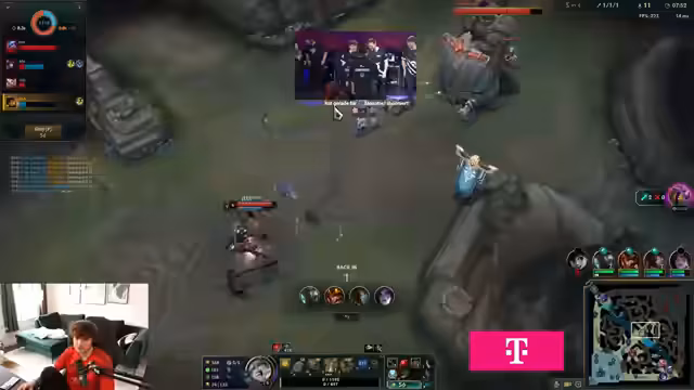 06:11:07Ein Spieler lobt die 'saubere' Leistung des Teams. Es wird der Wunsch geäußert, zu 'resetten', bevor das Spiel 'geworfen' wird. Die Spieler diskutieren über die Situation auf der 'Ball'-Lane und die 'Winning'-Position, obwohl Teile des Teams 'runtergewinnt' sind. Es wird die Anwesenheit von 'SK Bootcamp' und 'Magenta E-Trophy' in derselben Einrichtung erwähnt. Ein Spieler fragt nach der Anwesenheit eines anderen Spielers bei den 'Stream Awards'. Es wird über einen 'Gank' und einen 'Klassenerf' gesprochen. Die Spieler sind verwirrt über die aktuelle Spielsituation und die 'losende Position'. Es wird über 'Olaf Limits' und 'Serpent's Fang' diskutiert. Die Spieler planen, 'all in' zu gehen, aber ein Spieler 'missklickt' und setzt seine Ulti falsch ein. Es wird über die Dauer eines Kampfes und die Position von 'Cutter' gesprochen.