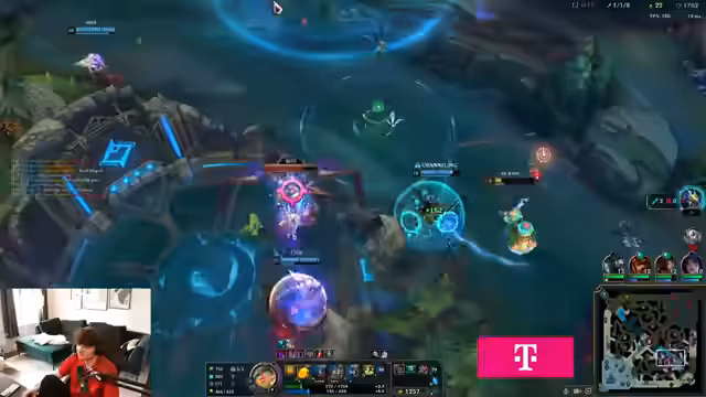 06:16:57Ein Spieler hat zum ersten Mal in seinem Leben 'Maus Obsess' wieder gesehen und fragt nach dessen Bedeutung. Es wird ein Vergleich mit 'T1' und 'JGG' angestellt. Ein Spieler lobt die eigene 'Set'-Leistung. Es wird über die eigene Leistung im Spiel gesprochen, wobei ein Spieler '0-4-0' am Anfang stand. Die Spieler erinnern sich an gewonnene 'Scrims' gegen 'Fnatic' in 2020. Es wird über die 'diabolische Dreckslache' eines 'Uhhu' gesprochen und die Notwendigkeit, zu 'resetten'. Ein Spieler berichtet, dass 'SK Bootcamp' zur selben Zeit wie 'Magenta E-Trophy' stattfindet. Es wird über die Anwesenheit bei den 'Stream Awards' gesprochen. Ein Spieler wird 'gerankert' und kann sich nicht wehren. Die Spieler sind verwirrt über die aktuelle Spielsituation und die 'losende Position'. Es wird über 'Serpent's Fang' und die fehlende 'Ult' gesprochen. Die Spieler diskutieren über die Stärke von 'Bard-Buff' und die 'Up-Scaling auf der W'.