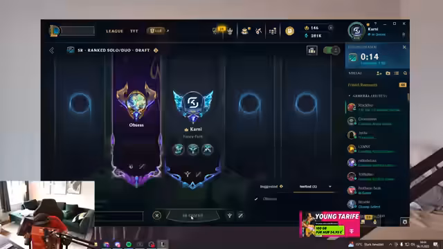06:35:57Ein Spieler fragt, ob ein anderer Spieler mit seinen 'Krux' bald durch ist und ob er 'Papst'. Es wird die fehlende 'Vision' auf der Bot-Lane bemerkt. Ein Spieler gibt zu, ein 'bekannter Ghoster' zu sein. Es wird die Erwartung geäußert, dass das Team 'drei Ganks verlieren' wird. Ein Spieler äußert seine Frustration über 'Galaxy Impact' und 'Boneplay'. Es wird die eigene 'Landfall'-Strategie und das 'Carried werden' besprochen. Ein Spieler fragt nach dem 'Damage' von 'Milio'. Es wird die 'Oriana Nojok' erwähnt und die Vermutung geäußert, dass sie 'trollt'. Ein Spieler bezeichnet sich selbst als 'Piss-Random im Streamer-Mode'. Es wird die Frustration über 'Softinting' und 'Free Wins' ausgedrückt. Ein Spieler läuft einem anderen 'legit hinterher' mit '13 CS'. Es wird die Möglichkeit besprochen, dass sie 'gebannt' wird, wenn sie 'weg von Mitte läuft'.