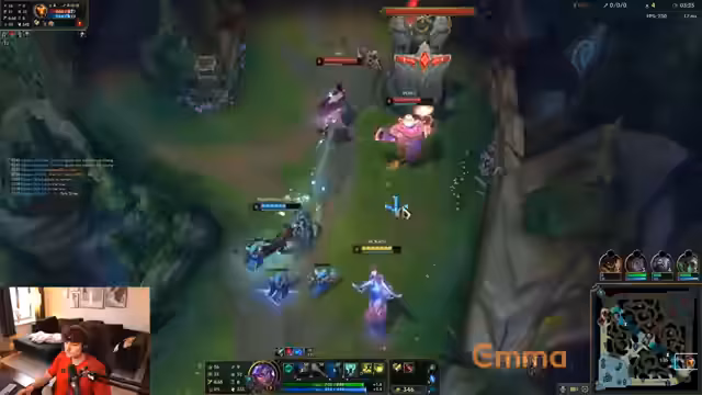 04:09:20Die Konzentration liegt auf dem aktuellen League-of-Legends-Game, insbesondere auf einer kritischen Situation. Der Streamer ist unsicher, ob ein gegnerischer Spieler, die Eve, verletzt sein könnte. Es folgt eine taktische Auseinandersetzung mit dem Gegner, der Nutzung von Wards (Pinkwards) und dem Ziel, Ressourcen wie den Drake zu sichern, während man im Spiel zurückliegt.