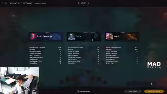 12:08:19Nach technischen Problemen mit dem Verbinden zu einer Lobby und Diskussionen über Computerprobleme schafft es die Gruppe, sich neu zu formieren und den Spielstand fortzusetzen. Sie nehmen ihre Rollen im Team neu auf und planen ihre Ausrüstung und Strategien für die bevorstehenden Kämpfe. Die Konversation ist locker und geprägt von Humor über die technischen Pannen, während sie gleichzeitig strategische Überlegungen für das weiterführende Gameplay anstellen.