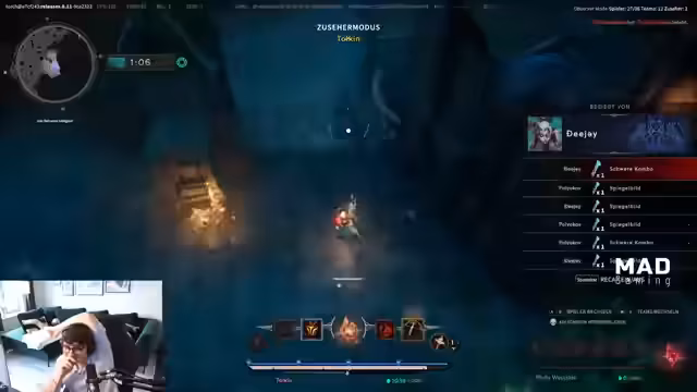 02:06:24Anfangs wird über die Oktoberfest-Logik gesprochen, warum nur Münchner Brauereien ein Zelt haben dürfen, und die Erklärung, dass es der Stadt München gehört. Danach wechselt der Fokus zum Spiel Archeron, einem neuen Arena-Battle-Royale-Game. Streamer Karni berichtet vom Playtest und seiner Motivation, den ersten Win zu holen, da er Offstream geübt hat. Der Streamer spielt mit Kutschop und Tolkien und betont die Tiefe und den schnellen, flashigen Charakter des Spiels.