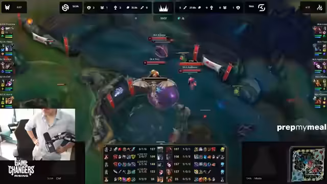 00:18:47Während des Game-Changers-Spiels von SK Avarosa wird der Draft und die Spielstrategie intensiv besprochen. Der Streamer analysiert den Vayne-Draft und merkt an, dass Vayne schwer zu spielen ist, obwohl die Bot-Lane als 'winning' eingeschätzt wird. Er kritisiert, dass SK zu früh 'overforced' und Fights sucht, obwohl die Champion-Kombination (Morgana, Nautilus) später skaliert. Es wird diskutiert, dass Vayne ohne Flash und mit Wave-Clear-Problemen in Schwierigkeiten gerät, während Solari effektiv mit vier Carries spielt. Der Streamer warnt davor, sich in ungewinnbare Fights zu stürzen, und betont, dass SK lieber Wellen klären und auf das Mid-Game warten sollte, um mit besserer Skalierung zu gewinnen.