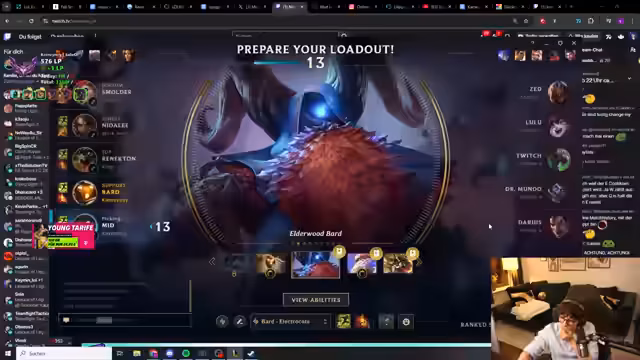 01:13:01Der Streamer wurde nach Madrid eingeladen, um als Influencer von Riot zum LEC-Finale zu reisen, hatte aber auch die Option zu Hause zu bleiben und zu casten. Es wurde besprochen, dass der EMEA Masters am Montag mit dem Hauptturnier startet, und Kaydreel ist aufgrund des Events nicht anwesend. Zudem wurde über eine Co-Streaming-Anfrage für einen Buff gesprochen, die vor Monaten gestellt wurde, wobei nur drei Slots verfügbar sind und er sich im Vergleich zu anderen Co-Streamern als zu random einstuft.