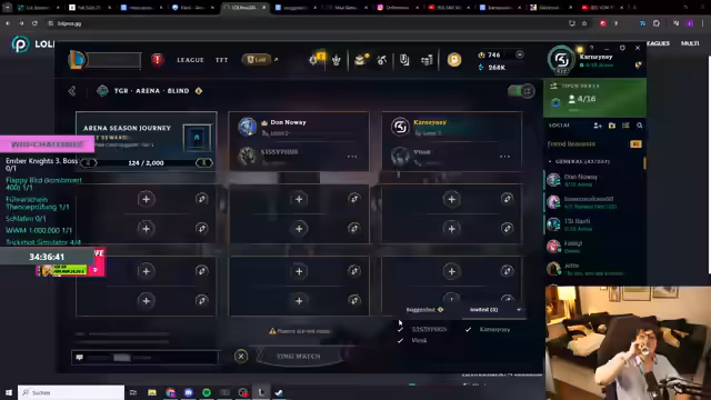 09:51:26Während des Arena-Spielens (Topf der Gier) gibt es strategische Diskussionen über Item-Builds, insbesondere für Draven und Jynx. Der Streamer (Karni) und sein Partner (Flesk) diskutieren über die Wirksamkeit von 'Reaper's Toll' versus normale Crit-Items und Lord Dominiks Regards. Sie analysieren ihre Gegner (u.a. Lulu/Renata und später Swain/Nafiri) und besprechen Gegenstrategien, wie das Fokussieren der Lulu. Es gibt mehrere knappe Kämpfe, revives und strategische Anpassungen, wobei die spezifische RNG-Situation und die Performance der Gegner (z.B. hohe Dichte an Support-Champions) diskutiert wird.