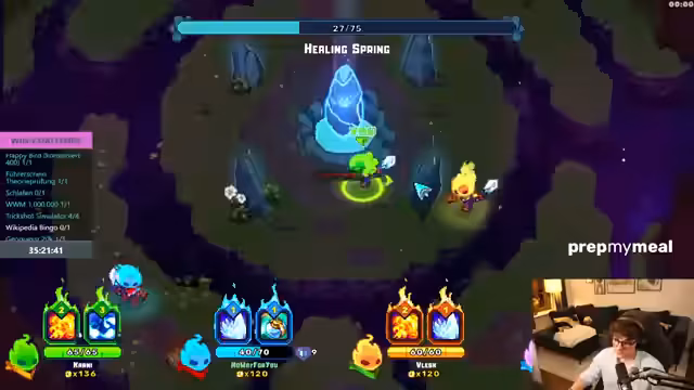 11:54:56Nach einer erfolgreichen Runde des Wikipedia-Bingos, bei der sie mehrere Begriffe finden konnten, kehren sie zum Gameplay zurück. Sie loben den Spaßfaktor der Aktivität und diskutieren die Ähnlichkeiten des Spiels (Ember Knights) zu einem anderen Titel (Gunfire Reborn), den sie häufig gespielt haben. Das Team blickt zufrieden auf ihre bislang erfolgreichen Leistungen zurück und plant den nächsten Schritt: den Bosskampf oder die Fortsetzung des Runs.