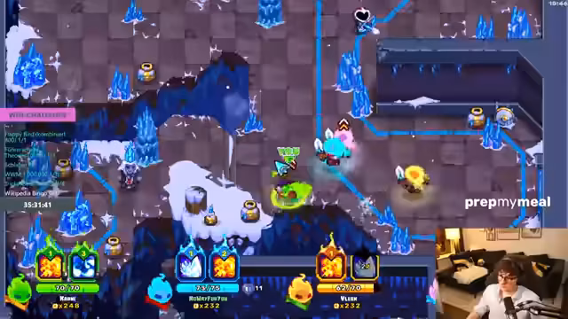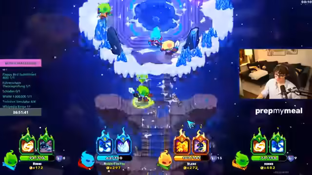 11:32:18Das Spiel wird unübersichtlich, da die Karte viel Schaden verursacht und mit Fallen gesät ist. Die Gruppe muss strategisch vorgehen, während einer der Spieler extrem niedrige Lebenspunkte (1 AP) hat und stirbt. Der Fokus verschiebt sich auf den Abschluss der Winchallenge, die als vorletzter Titel angesehen wird. Sie planen, einen Baum zu nutzen, um einen Skilltree zu verbessern und neue Waffen zu erhalten, nachdem sie 300 Sammelobjekte gesammelt haben.