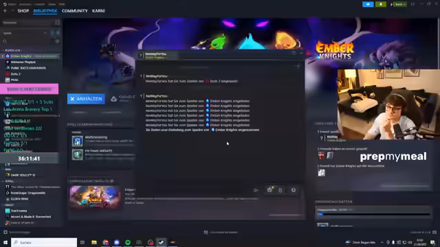 09:27:15Der Streamer startet in die viel erwartete Win-Challenge, jedoch stehen ihm verschiedene unvorhergesehene Hindernisse im Weg. Neben den technischen Schwierigkeiten mit dem Headset-Akku, der kurz vor dem Entleeren steht, äußert er sich über die umfangreiche Vorbereitung, die eine ganze Kiste italienisches Bier beinhaltet und seinen Zustand beeinflusst. Obwohl der Streamer müde ist und nur wenig geschlafen hat, ist er motiviert und bereit, die Challenge mit seinem Mitspieler Flesk zu meistern und hofft auf eine erfolgreische Runde Arena, um in die Win-Challenge einzusteigen.