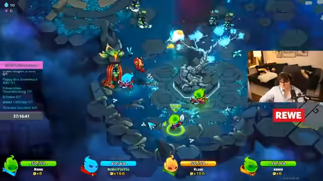 12:58:41Das Team setzt seinen Spielverlauf fort und enfrentiert Wellen von Gegnern und Minibosses. Es folgt eine intensive Diskussion über Strategien für den dritten Boss, einschließlich der Zerstörung von Totems und dem Umgang mit dessen Fähigkeiten. Die Spieler erleiden Verluste, lernen daraus und passen ihre Taktik an, indem sie das Dodging und die Nutzung von Invisibility optimieren. Später wird der 'Rewind Challenge' erwähnt, ein spezieller Spielmodus, und die Vorbereitung auf den finalen Boss intensiviert sich. Dabei tauschen die Spieler Fähigkeiten und planen die weitere Vorgehensweise, während sie neue Relikte und Upgrades inspizieren, um ihre Leistung in den nächsten Phasen zu steigern.