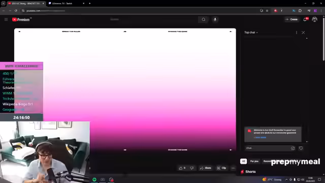 00:02:49Der Streamer spricht über seinen aktuellen Zustand und die Herausforderungen des Vortags. Er erwähnt, dass die Challenge 'gestern nicht geschafft' wurde, immer noch läuft und er sich 'heute nur das Comfy-Hemd' angezogen hat. Es folgen persönliche Anekdoten, wie das fast Verschlafen und der Plan, nach dem Stream noch etwas zu essen, während ein Vorbereitungsmahl auf dem Herd brutzelt. Ein wichtiger Punkt ist die Erwähnung, dass er 'Game-Changers vergessen' hat, dass SK heute spielt, was seine zeitliche Planung beeinflusst hat. Der Chat wird in die Diskussion einbezogen, zum Beispiel beim Thema Wiesn (Oktoberfest), wo er Neid auf die Anwesenden ausdrückt, aber erklärt, warum er selbst nicht hingegangen ist.