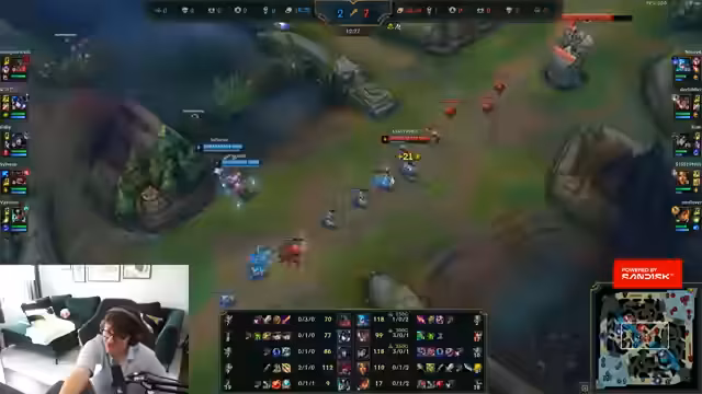 07:08:22Während eines weiteren Spiels feiert der Streamer einen erfolgreichen Kill-Sound, den er als Supporter seltener hört. Er reagiert auf eine ungewöhnliche Nachrede eines Gegners. Der Streamer äußert sich auch über einen spezifischen Match-up und erwähnt, dass Heimerdinger auf Toplane momentan stark sei, da er gegen Rek'Sai gewinnen könne und in der LEC gespielt werde.