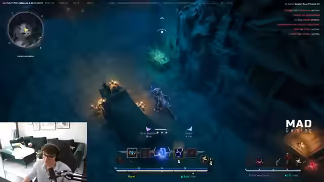 02:08:46Der Playtest für das neue Arena-Battle-Royale Archeron beginnt. Kuti und Tolkien schließen sich dem Stream an. Das Spiel wurde gestern Server-seitig geöffnet und wird heute erstmals gespielt. Der Streamer beschreibt Archeron als ein flashy, schnelles Spiel mit hoher mechanischer Tiefe. Ziel ist es, den ersten Win zu holen. Es wird auf die gemeinsame Session vorbereitet.