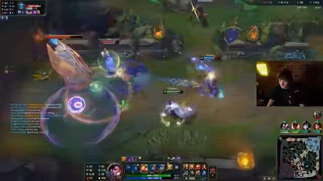 08:51:20Der Streamer analysiert intensiv die aktuelle Spielsituation, insbesondere seine Rolle als Malphite gegen einen starken Kha'Zix. Er überlegt, ob er einen Tank- oder einen Full-AP-Build wählen soll, da er im Nachteil ist. Er diskutiert mit dem Chat über die Stärken der Champions wie Varus und Talia und die Notwendigkeit, bestimmte Ziele zu fokussieren, während er versucht, die richtige Position im Kampf zu finden und Hilfe vom Team einzufordern.
