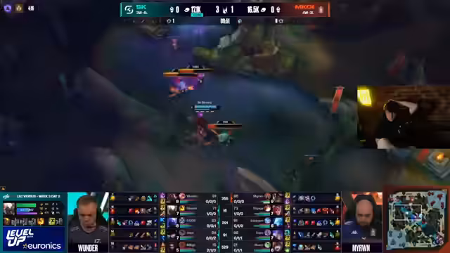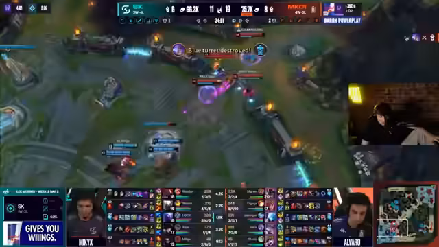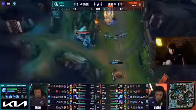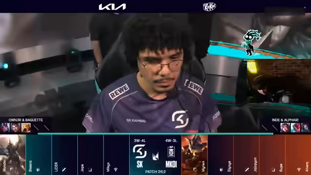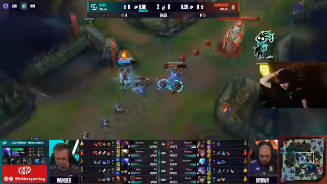 05:40:02Die Analyse zeigt, dass M.K.O.I. leicht im Gold führt (1500 Gold). Der Fokus liegt auf dem late-game scaling von Anivia und Yone, während SK Gaming stark im Mid-Game ist. Die Bedeutung von Drakes ist weniger geworden, da man Gold durch Platten bekommen kann. Die Caitlyn/Elise-Bot-Lane ist defensiver geworden, da ihr Jungler hinter ist. Anivia wird als 'dämonisch' und extrem schwer zu fassen bewertet, da sie Ryze und Pantheon stark neutralisiert.
