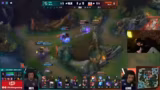 05:00:47Ein kritischer Fight am Drake wird analysiert, bei dem das Team die Armi (Ahri) flankieren wollte. Der Streamer konstatiert einen Totalausfall der Performance, da die Armee mit Flash und Heal überleben konnte. Er kritisiert Ezreal, der ohne Flash und Ult angreifen wollte und einen Fehler machte. Es folgt die Betrachtung, dass ein Versuch, den Nashor zu stehlen, mit dem vorhandenen DPS möglich sei, aber sehr riskant sei.