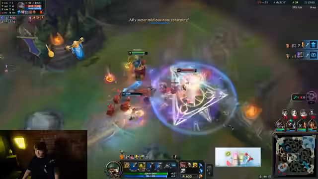 05:52:23Der Streamer kommt zu dem Schluss, dass das Spiel für SK Gaming nicht mehr auf normalem Wege zu gewinnen ist. Yone mit Lulu ist ein 'hard counter' gegen die SK-Komp und lässt sich nicht 'traden'. SK kann nur noch durch verrückte 'NNO-Side-Land-Plays' gewinnen. M.K.O.I. ist die beste Team in der LEC und hat das Game durch einen early Level 1 Invande gewonnen. Der Gold-Vorteil und das scaling sind nun zu groß.