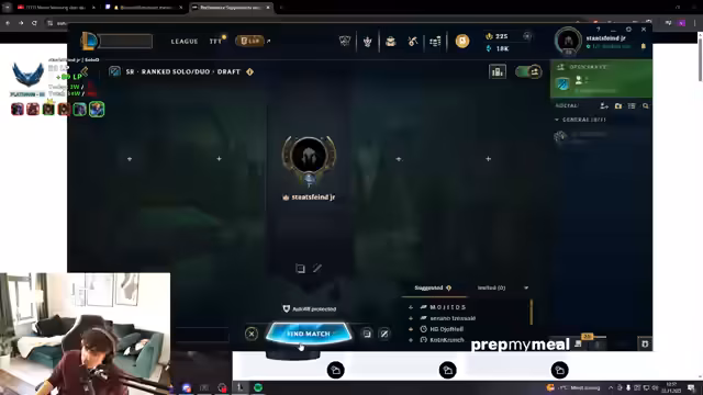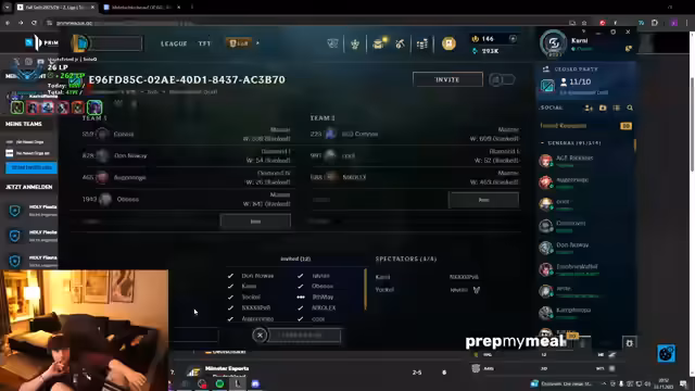 09:47:33Nachdem die technischen Probleme behoben sind und alle Spieler im Discord-Call sind, beginnt die Vorbereitung auf das nächste Match. Die Spieler tauschen sich über ihre Erfahrungen des Tages aus, wobei viele von anstrengenden Solo-Queue-Sessions und Niederlagen berichten. Die Stimmung ist eine Mischung aus Müdigkeit und dem Wunsch nach Erfolg. Es wird über Champion-Bans und -Picks diskutiert, wobei die Teamzusammenstellung und die Strategie gegen die Gegner im Vordergrund stehen. Die Spieler versuchen, eine ausgewogene und effektive Komposition zu finden, die sowohl defensiv stark ist als auch offensive Möglichkeiten bietet. Die Kommunikation ist lebhaft, und es wird viel über die Stärken und Schwächen der eigenen und gegnerischen Champions gesprochen.