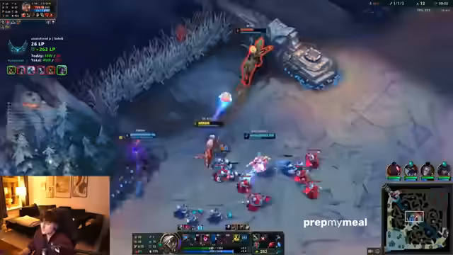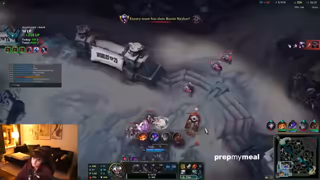 08:19:01Das Spiel nimmt eine frustrierende Wendung, da der Streamer und sein Team mit einem schnell eskalierenden Gegner konfrontiert sind, dessen „Snowball so out of control“ ist. Der Schaden der Gegner wird als „illegal“ beschrieben, was zu wiederholten Niederlagen führt. Der Streamer beklagt die mangelnde Koordination und Unterstützung durch sein Team, insbesondere durch den Midlaner (Medio), der trotz der kritischen Situation auf der Botlane den Herald alleine macht. Es wird die Schwierigkeit betont, gegen einen Range-Supporter wie Fiddlesticks Vision zu erlangen, was das Spiel zusätzlich erschwert. Die Stimmung ist angespannt, da der Streamer seine Frustration über die Fehler des Teams und die mangelnde Einsicht der Mitspieler äußert. Trotz der Rückschläge wird die Hoffnung auf einen Sieg nicht ganz aufgegeben, da das Team noch skalieren und einen „Easy-Game für den Kha'Zix“ ermöglichen könnte, wenn die Koordination besser wäre.