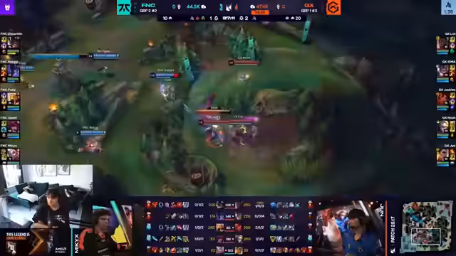 07:45:02In der 44. Minute gelingt es Fnatic mit einem beeindruckenden finalen Play das Spiel zu gewinnen. Nachdem Giant X mehrere Chancen zum Abschluss des Spiels verpasst hat, nutzt Fnatic eine kreative Strategie. Sie nutzen einen Gooby, einen einzelnen Kanonen-Minion, um die Turrets anzugreifen und den Nexus anzugreifen. Giant X ist durch dieses unerwartete Manöver überfordert und kann nicht rechtzeitig reagieren. Der Sieg wird als "geiles Team zum Zugucken" und als "Entertainer" bezeichnet, das die Fähigkeit besitzt, selbst in aussichtslosen Situationen mit unglaublicher Resilienz und Entertainment-Wert zu siegen.