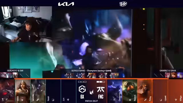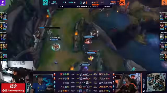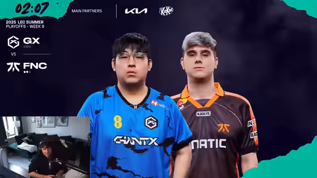 08:08:33Der Fokus liegt auf den intensiven Lane-Kämpfen in der Anfangsphase, speziell in der Botlane. Noahs und Johns Spiel als Fortnite gegen den Pyke wird als solide bewertet. Ein zentrales Thema ist das aggressive Vorgehen von Fnatic bei der Krabbe, wo sie erfolgreiches Vision-Contesting und einen ausgezeichneten Trade herausholen. Nach diesem Gewinner erlangen Fnatic die Kontrolle über das Spiel und starten Druck auf mehreren Lanes, was Giant X unter Zugzwang setzt und zu defensivem Spiel zwingt.