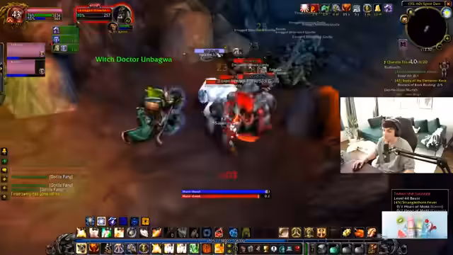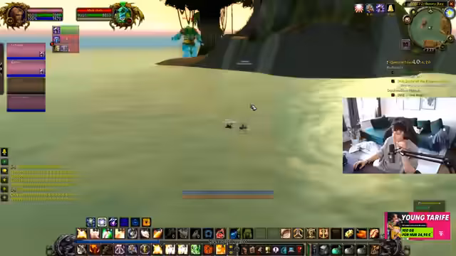 02:02:20Nachdem League of Legends thematisch behandelt wurde, wechselt der Streamer zu World of Warcraft. Er ist im Gebiet Schlingendorntal und macht dort Quests. Sein Ziel ist es, Level 43 zu erreichen, wobei er bereits "Double World Buffed" ist. Er plant, mit seinem Gildenmitglied Kevin Elite-Quests zu erledigen, besonders die "Truhe des Kapitäns", während er gleichzeitig darauf achtet, keinen Platz im Questlog zu verschwenden, indem er alle möglichen Quests annimmt.