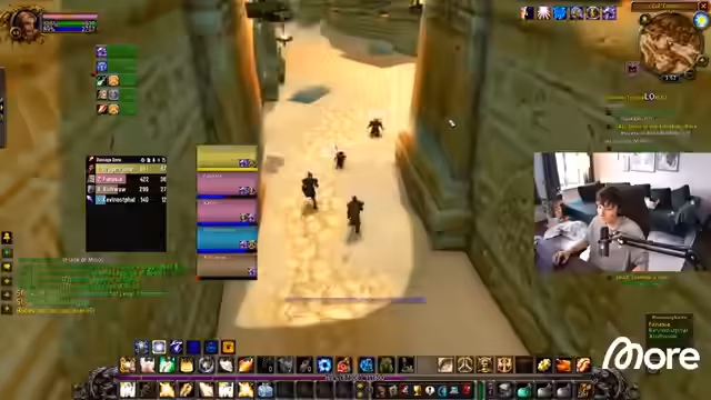 05:12:42Der Streamer übernimmt die Rolle des Healers im Dungeon Zul'Farrak. Er ist unsicher, da er diese Rolle selten ausfüllt, und konfiguriert sein Interface und seine Fähigkeiten, insbesondere ein Mouse-Over-Heal-Add-on, um die Heilung effizient zu gestalten. Die Gruppe bereitet sich auf den Dungeon vor, indem sie Quests teilt, Buffs verteilt und Tränke vorbereitet. Während des Dungeons konzentriert sich der Streamer darauf, den Tank Xio zu heilen und auf Magieeffekte zu dispellen, während er gleichzeitig seinen Mana-Verbrauch im Auge behält.