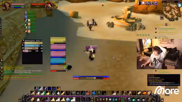 07:09:52Der Streamer wechselt das Gebiet und berichtet über seine Erfahrungen mit der Allianz im Vergleich zur Horde. Er findet, dass das Questen bei der Allianz deutlich besser ist und vergisst ständig, sich im Auto-Pilot-Verhalten an die Horde-Gewohnheiten zu halten. Während des Farmens von Gegenständen und beim Erkunden neuer Gebiete wie Desolace, Feralas und Tanaris, stößt er auf einige technische Probleme und sucht nach den besten Strategien, um seinen Heiler zu leveln und Ausrüstung zu sammeln.