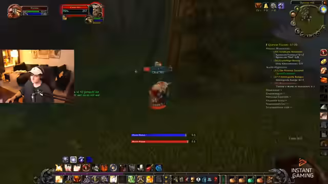 05:47:02Westfall wird als schwieriges Gebiet mit Elites und gefährlichen NPCs beschrieben, wo viele Spieler sterben könnten. Der Spieler vergleicht es mit Red Ridge, das als coolstes Allianz-Levelgebiet gilt, aber noch nicht fertig gestellt ist. Syndicate-Quests werden erläutert: Footpads und Documents sind Kill-Quests, während Poison und Disarm gefährlich sind. Griefing wird thematisiert: Aktives Griefen führt zu sofortigem Bann durch Blizzards Hotline, während 'positives Griefen' (Mobs klauen) unvermeidbar ist. Ein deutsches Streamer-Event am Monatsende wird erwähnt.