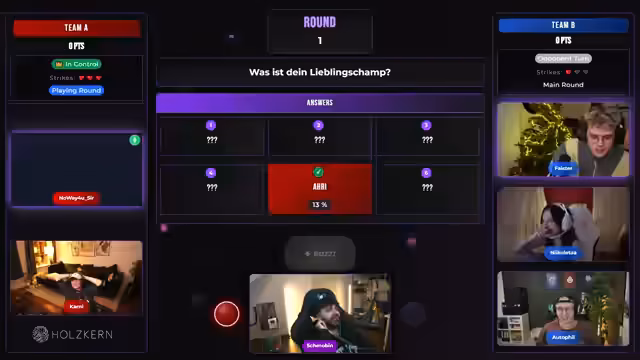Quizbeginn mit Champion-Fragen und Punktedebatten