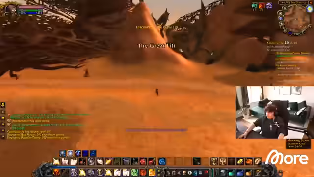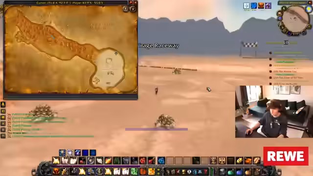 05:53:36Nach dem Erreichen von Level 33 im Schwingendorntal stellt der Streamer fest, dass die weiteren Quests im Tal nicht mehr ausreichend Erfahrungspunkte (EP) bieten. Er sucht nach alternatives Gebiet zum Leveln und überlegt zwischen Arathi Highlands und Desolace. Letzteres scheint aussichtsreicher. Parallel dazu wird der Beruf des Kochens endlich fortgesetzt, um Inventarplatz freizumachen, da das Kochzeug als Ballast empfunden wird.